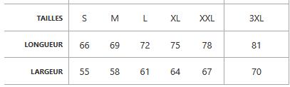 - Tailles : Du S au 3XL