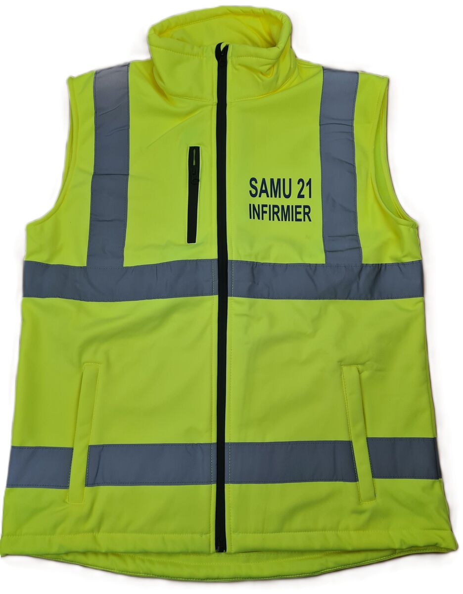 Gilet softshell personnalisé recto verso avec votre texte sur 2 lignes. Personnalisation réalisée dans nos ateliers en France. (attention aux majuscules, minuscules, accents..)