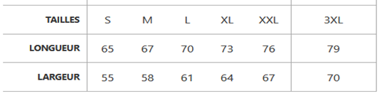 - Tailles : S au 3XL