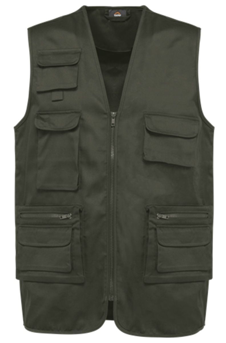 Gilet sans manches multipoches polycoton - Unisexe - WK609 - kaki foncé