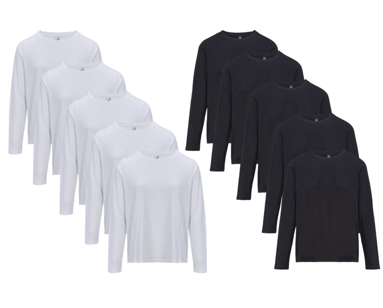 Lot de 10 T-shirts manches longues pour FEMME : 5 t-shirts blancs et 5 t-shirts noirs