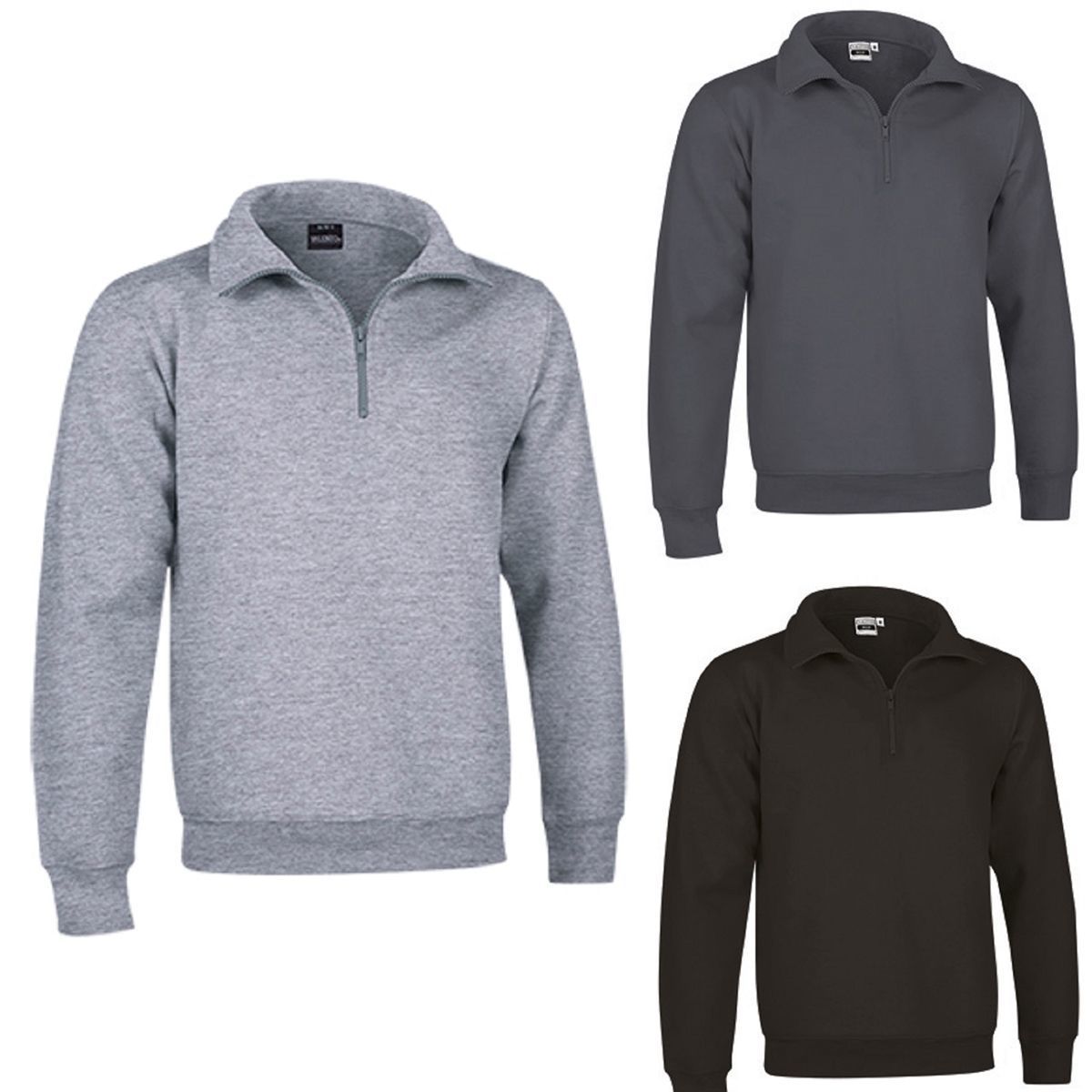 Lot 3 Sweats col camionneur zippé - WOOD - gris chiné, gris charbon et noir