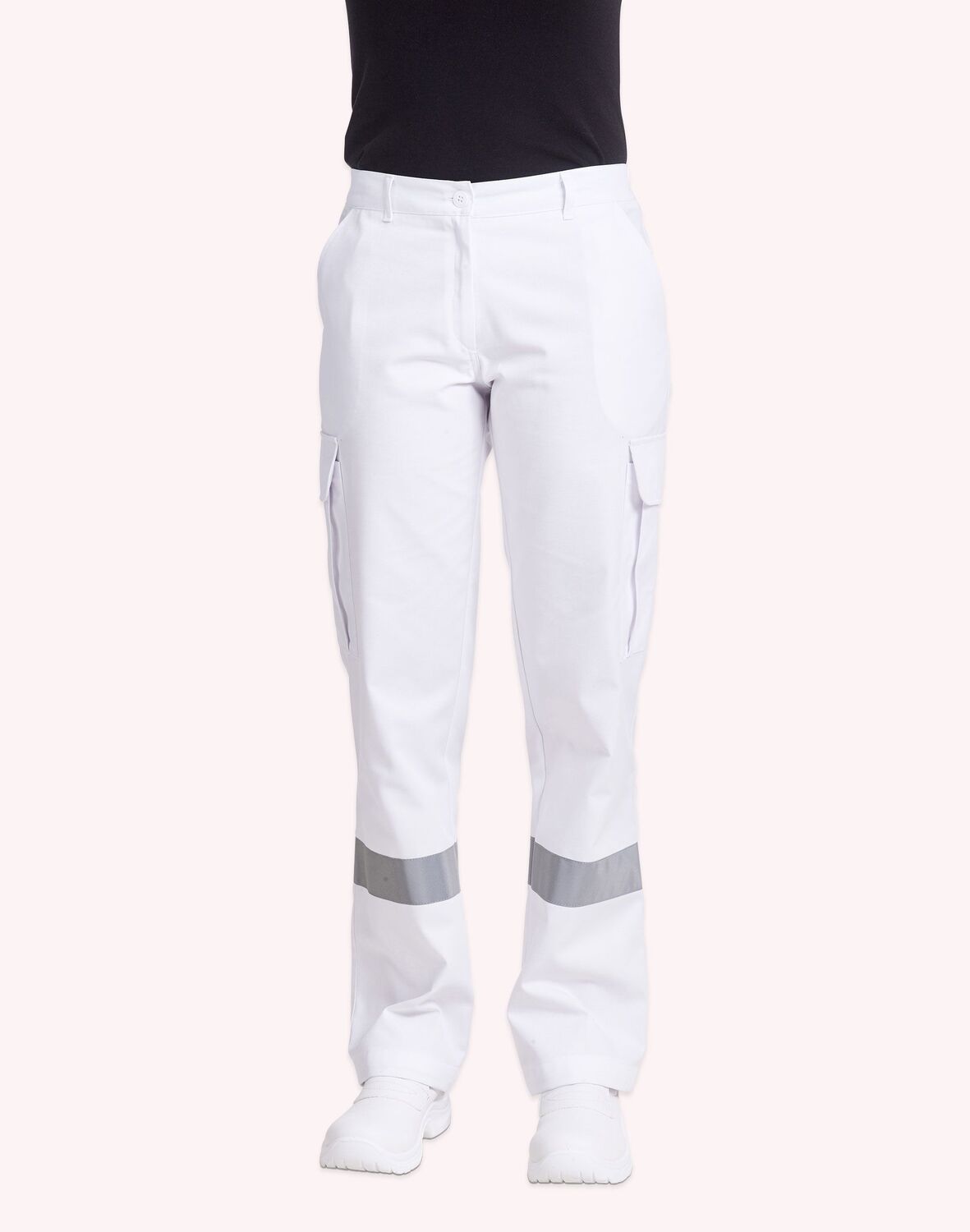 - 2 poches italiennes, 2 poches cuisses à rabat fermées par velcro, 1 poche stylo sur cuisse droite, 2 poches arrière fermées par velcro