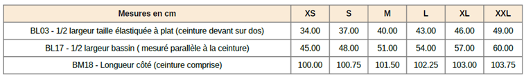 Tailles : Du XS au XXL
