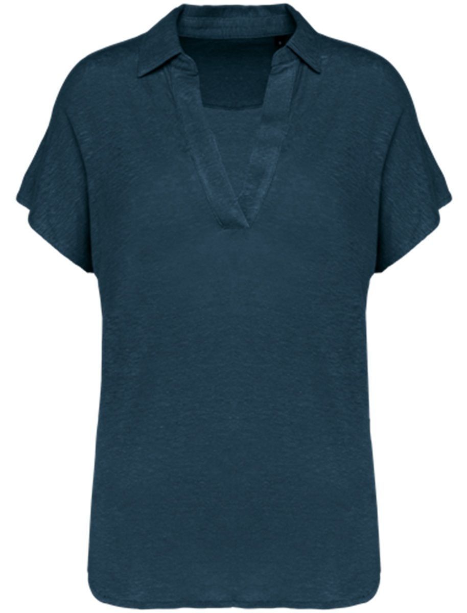 - Col avec pied de col et une patte polo en V sans bouton dans la même matière que le vêtement