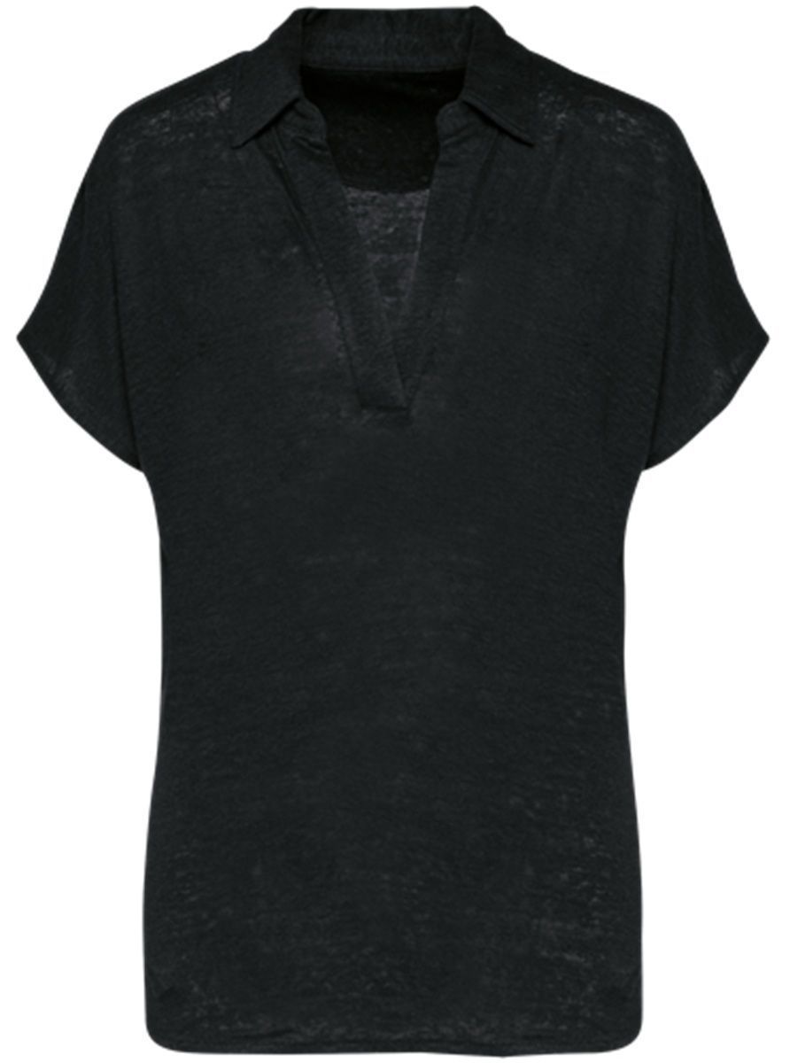 - Col avec pied de col et une patte polo en V sans bouton dans la même matière que le vêtement