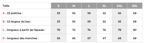 - Tailles : Du S au 3XL