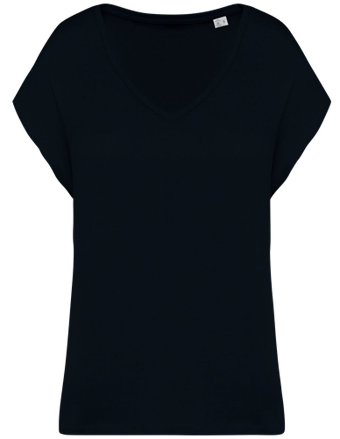 T-shirt loose col V écoresponsable - Femme - Ce t-shirt est un choix judicieux pour celles qui recherchent un vêtement à la fois confortable, stylé et respectueux de l'environnement
