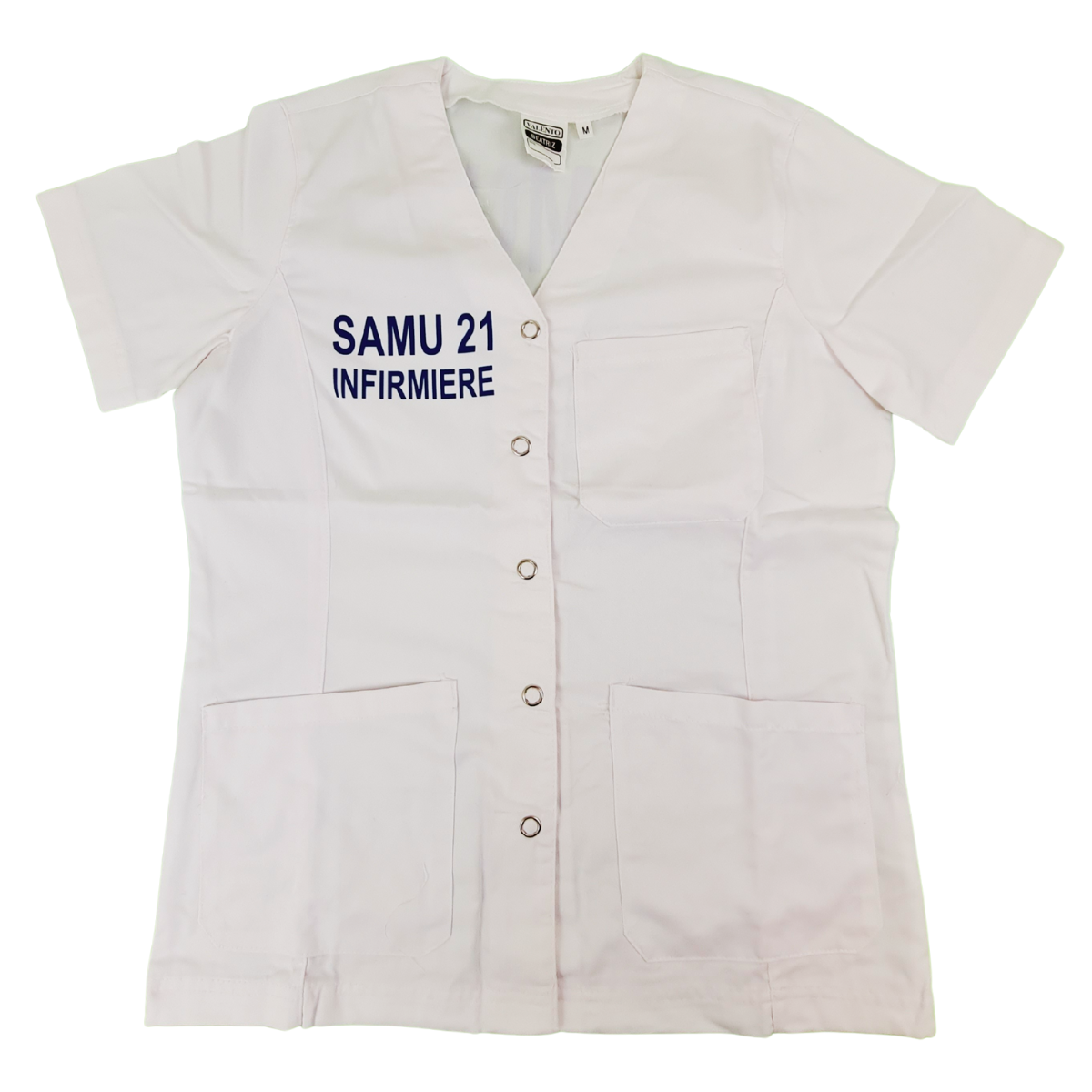 La tunique de travail / blouse courte Beatriz est un vêtement professionnel, pofession médicales, personnel hospitalier, pour femme alliant fonctionnalité et élégance