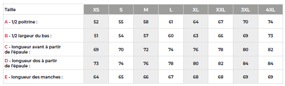 - Tailles : Du XS au 4XL
