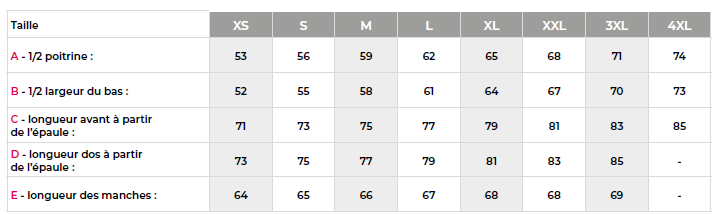 - Tailles : Du XS au 4XL