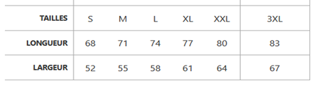 - Grammage : 320 g/m² ce qui en fait un vêtement robuste idéal pour les conditions hivernales